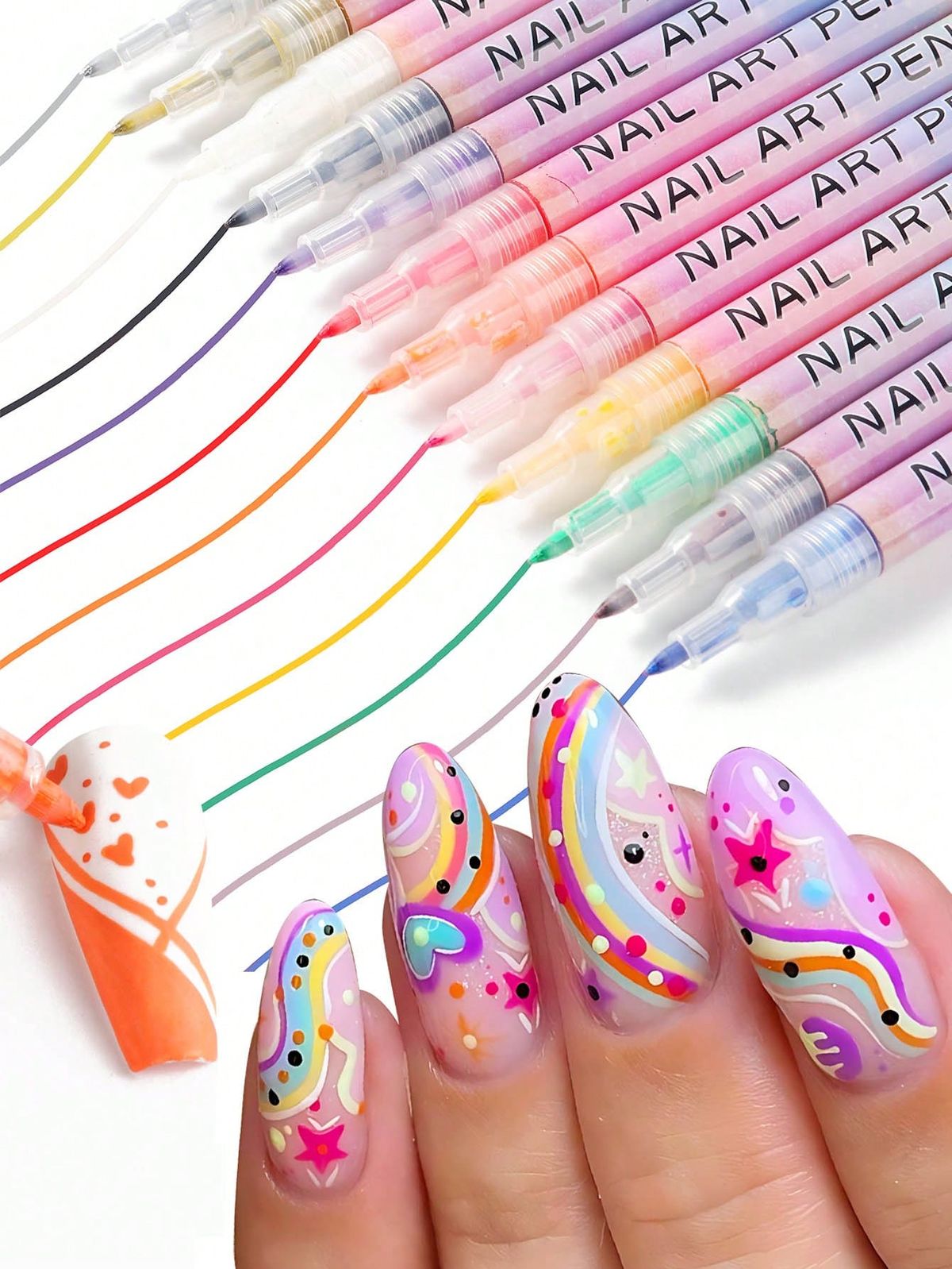 12 Vibrant Colors That Make Your Nails Pop ➤ Unleash your creativity with our professional 12-color nail art pen set. These richly pigmented, bold shades glide on smoothly for eye-catching designs that last. Perfect for complementing any nail color!